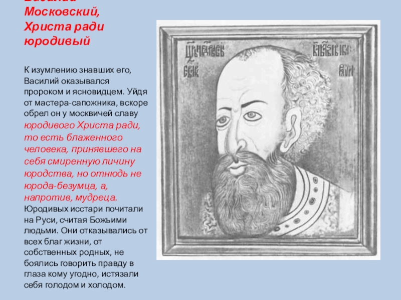 Слайд 5Василий Московский, Христа ради юродивый (1468 – 2.08.1551).