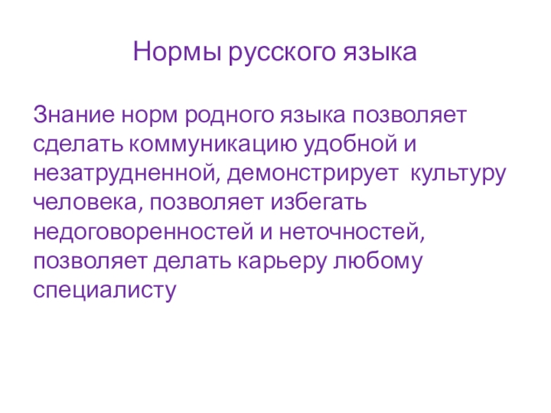 незатрудненной, демонстрирует культуру человека, позволяет избегать недоговоренностей и неточностей, позволяет делать карьеру любому специалисту