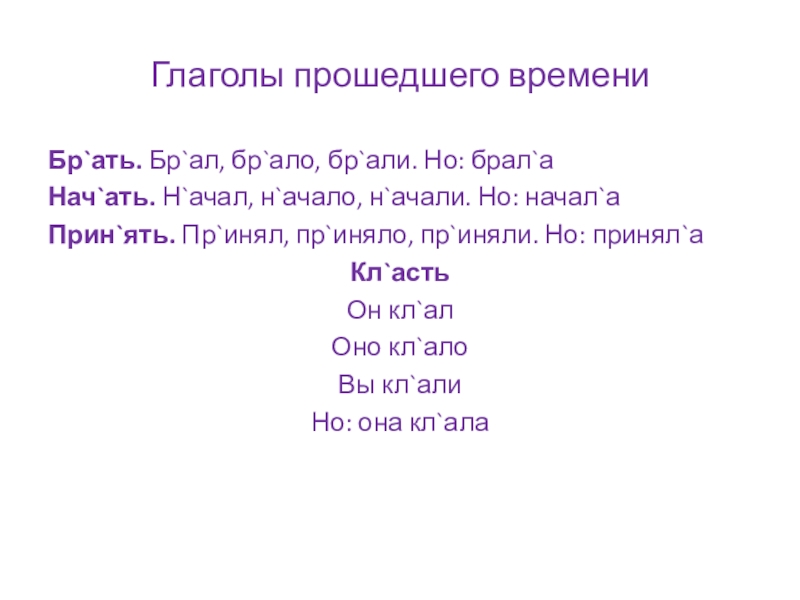 Бр`ать. Бр`ал, бр`ало, бр`али. Но: брал`а