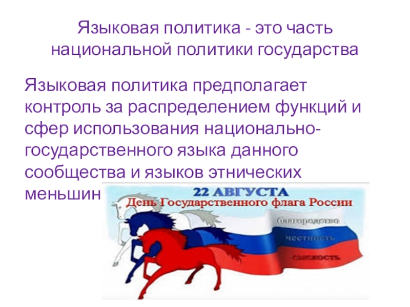 распределением функций и сфер использования национально-государственного языка данного сообщества и языков этнических меньшинств в его рамках.