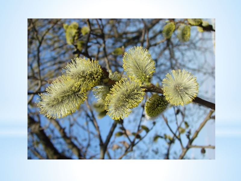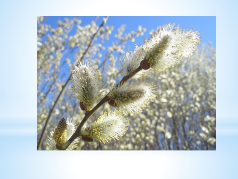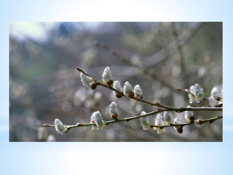 Цветёт верба  Когда зацветает верба – появляется у нас вербное настроение. Оно какое-то свежее, радостное, пушистое.Зацветает