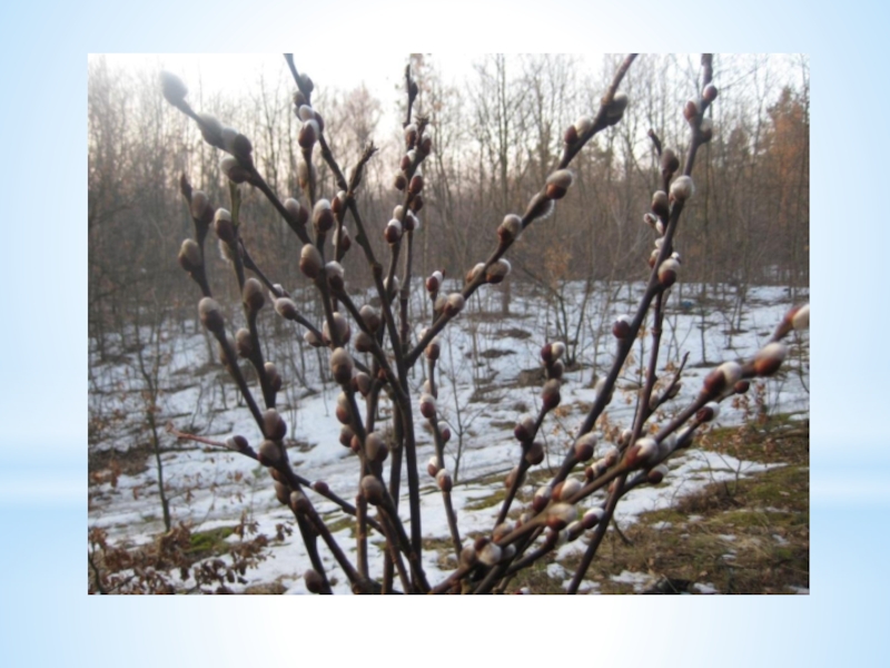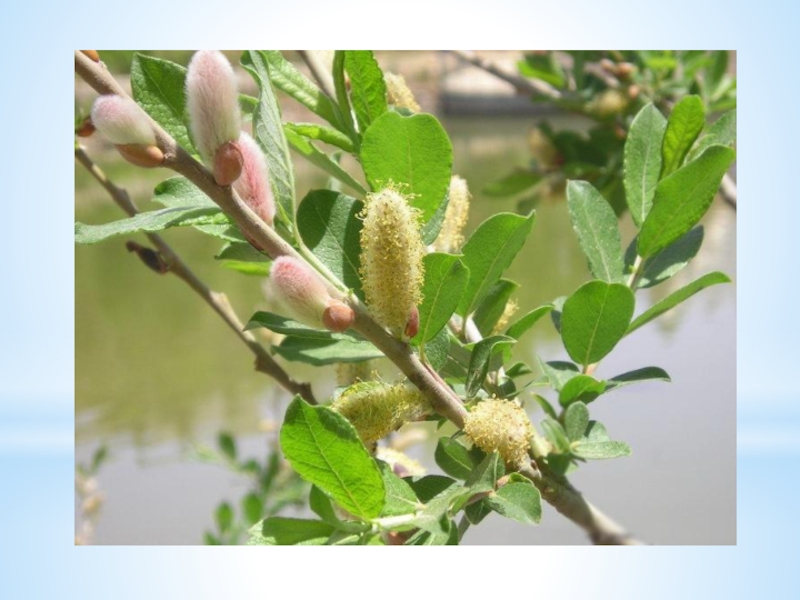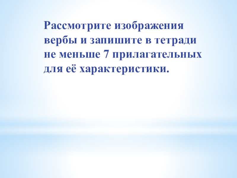 Слайд 4 Рассмотрите изображения вербы и запишите в тетради не меньше