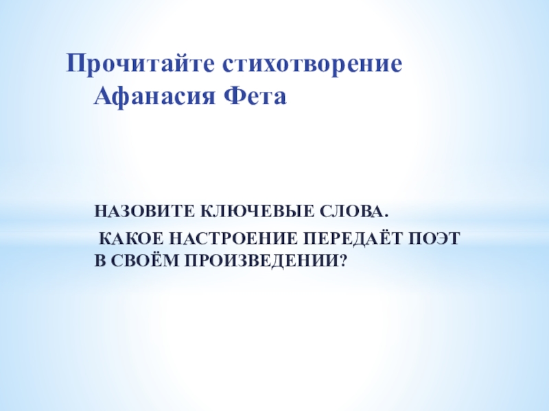 Прочитайте стихотворение Афанасия Фета НАЗОВИТЕ КЛЮЧЕВЫЕ СЛОВА. КАКОЕ НАСТРОЕНИЕ ПЕРЕДАЁТ ПОЭТ В СВОЁМ ПРОИЗВЕДЕНИИ?