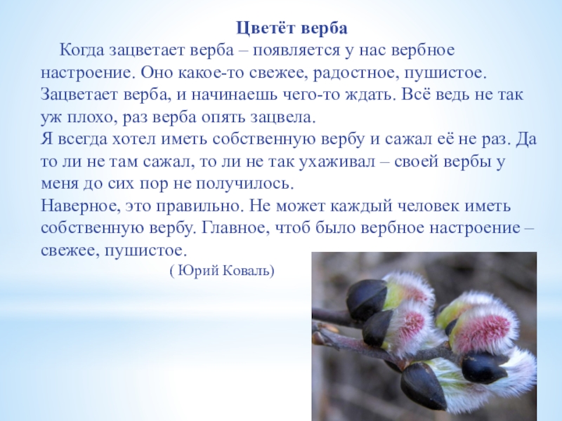 Прочитайте этюд о вербе писателя Юрия Коваля