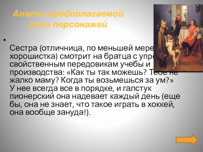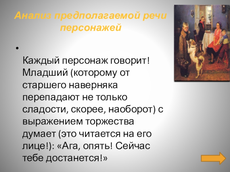 Слайд 19Анализ предполагаемой речи персонажей