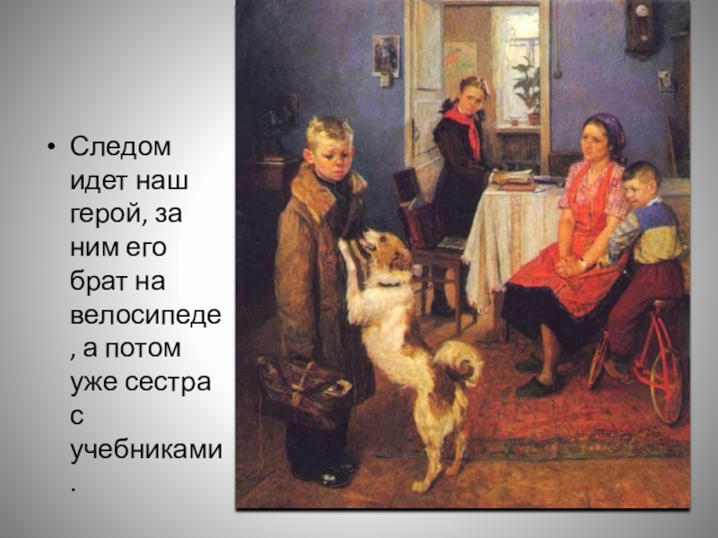 Слайд 10Следом идет наш герой, за ним его брат на велосипеде, а