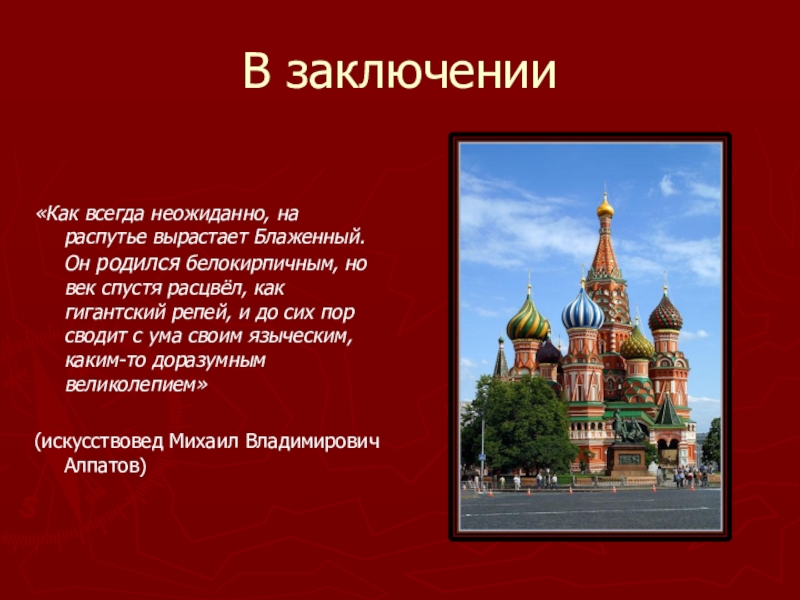 Написать сочинение-описание «Храм Василия Блаженного» / или описание той его