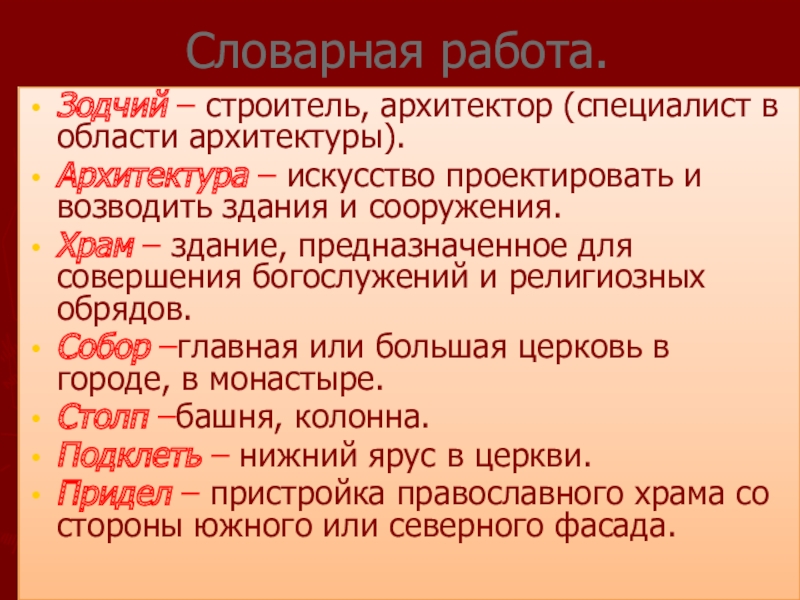 Зодчий – строитель, архитектор (специалист в области архитектуры).