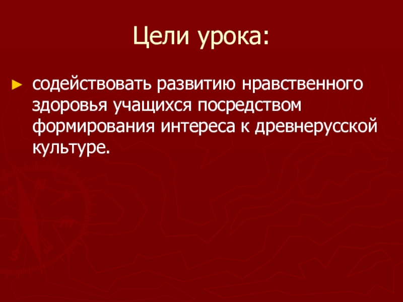 содействовать развитию нравственного здоровья учащихся посредством формирования интереса к древнерусской