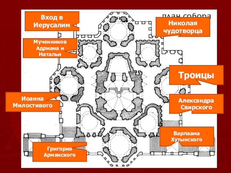 Слайд 8Собор состоит из восьми храмов, престолыСобор состоит из восьми храмов, престолы