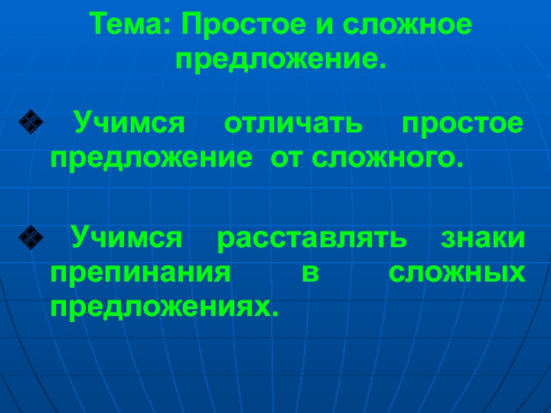 Тема: Простое и сложное предложение.       Учимся отличать простое предложение от сложного.