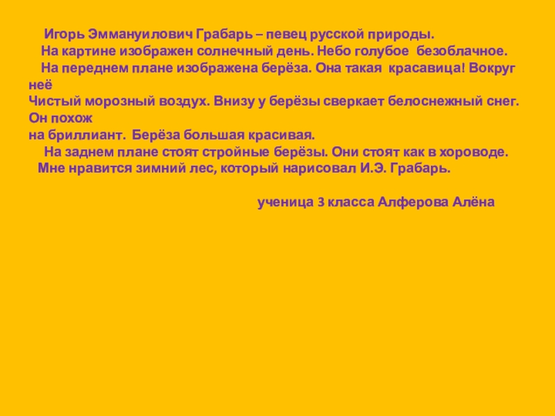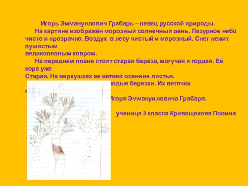 Я восхищаюсь картиной Игоря Эммануиловича Грабаря.