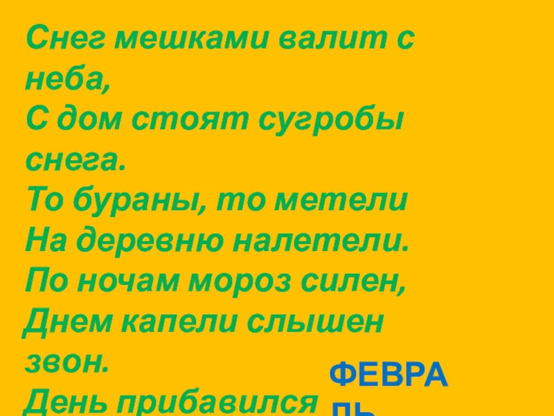 Слайд 10ФЕВРАЛЬ – ВЕТРОДУЙ, ЛЮТЫЙ,