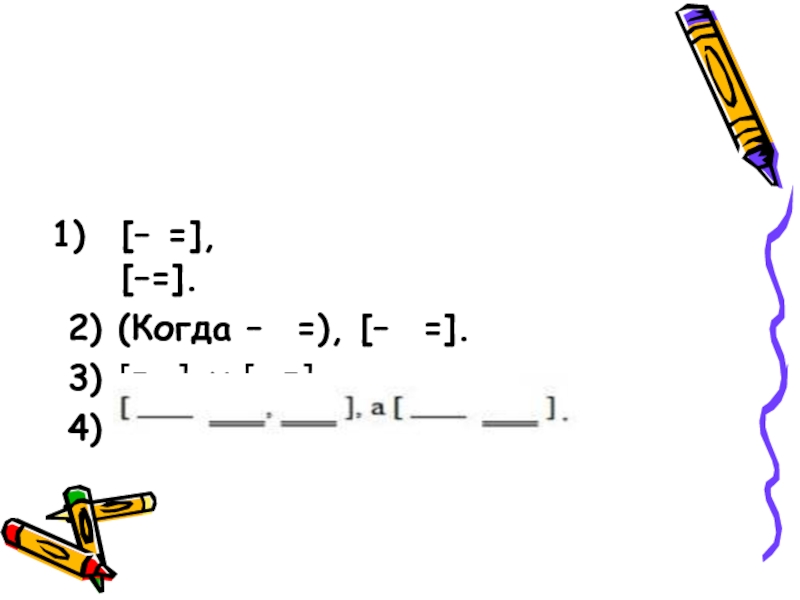 [– =], [–=].                            2) (Когда –  =), [–  =].        3) [= –], и [– =]. 4)