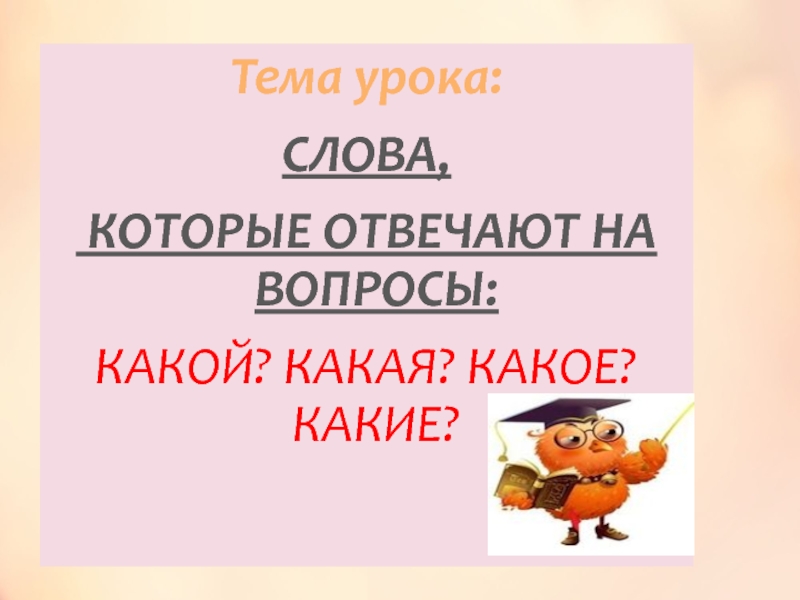 Тема урока: Слова, которые отвечают на вопросы КАКОЙ? КАКАЯ? КАКИЕ?