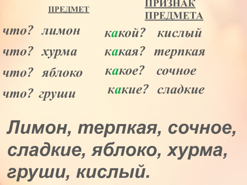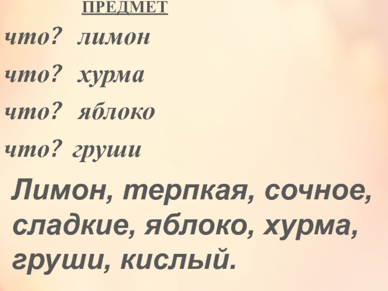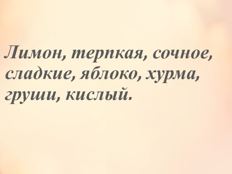 Лимон, терпкая, сочное, сладкие, яблоко, хурма, груши, кислый.
