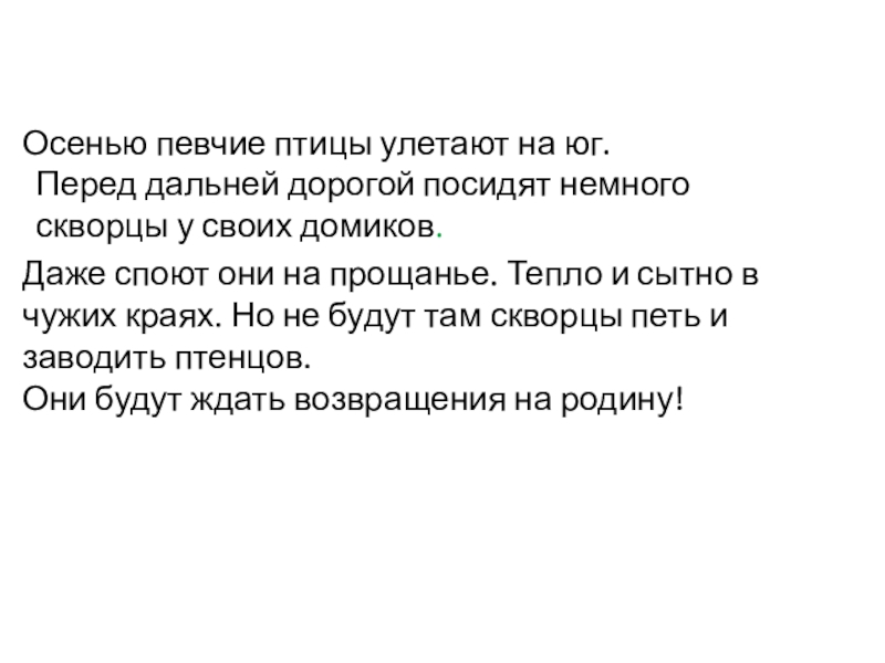 Перед дальней дорогой посидят немного скворцы у своих домиков.