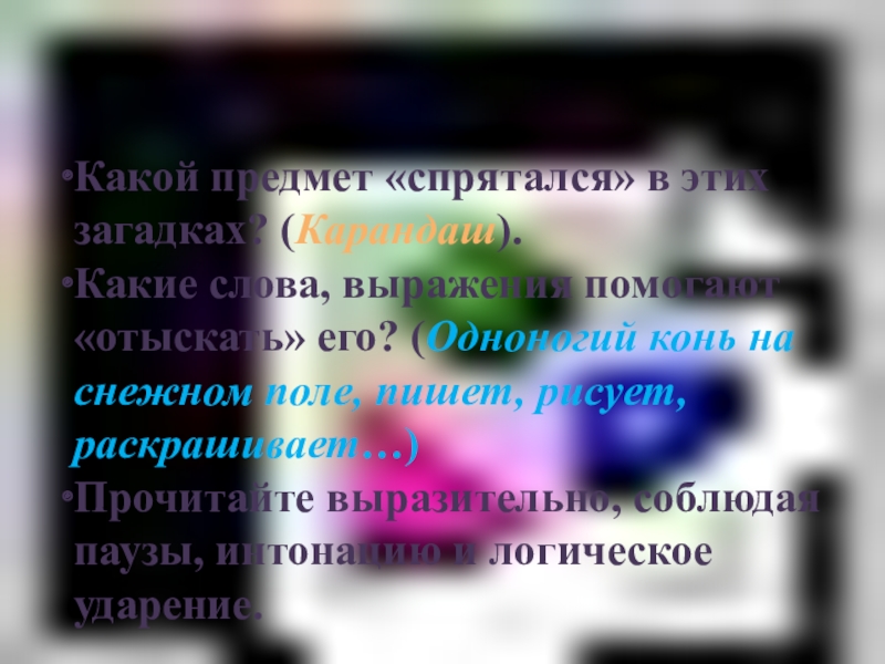 Какой предмет «спрятался» в этих загадках? (Карандаш).