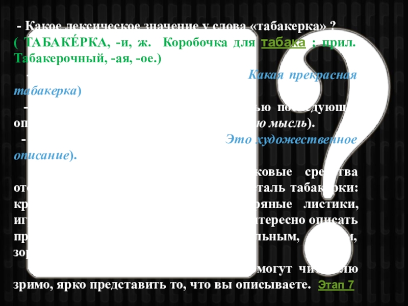 Слайд 24 - Какое лексическое значение у слова «табакерка» ?