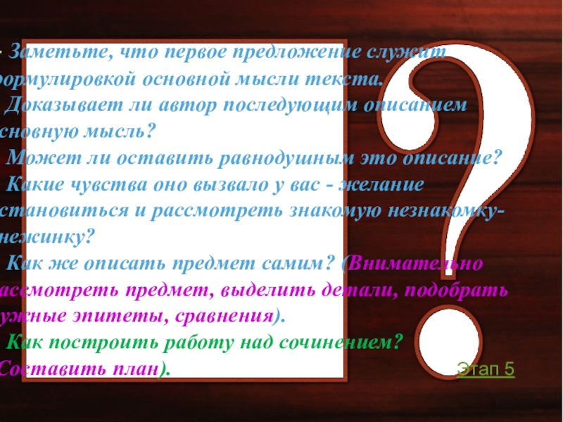 - Как построить работу над сочинением? (Составить план). Этап 5