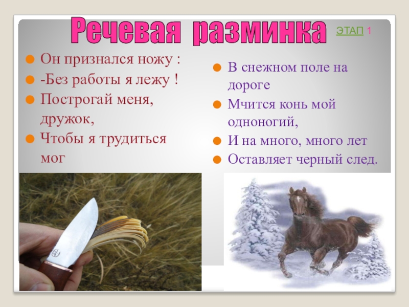 его? (Одноногий конь на снежном поле, пишет, рисует, раскрашивает…)