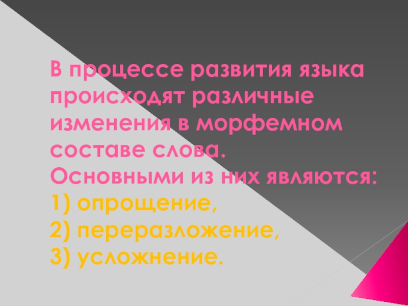 Слайд 10В процессе развития языка происходят различные изменения в морфемном составе слова.