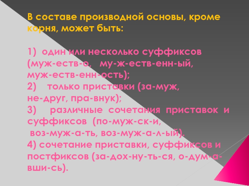 Слайд 18В составе производной основы, кроме корня, может быть: