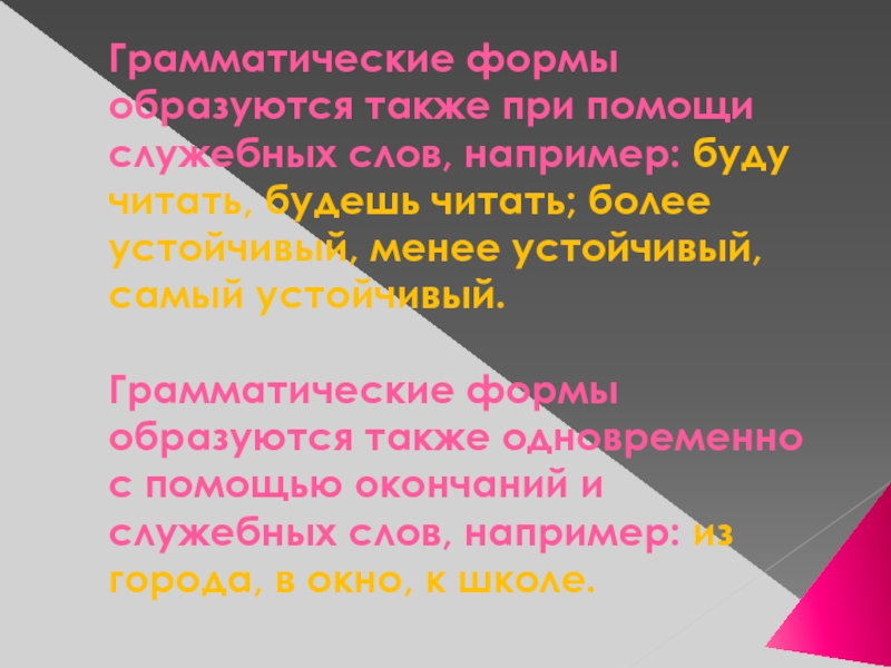 Слайд 8Грамматические формы образуются также при помощи служебных слов, например: буду читать,