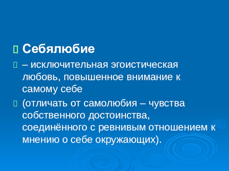 – исключительная эгоистическая любовь, повышенное внимание к самому себе