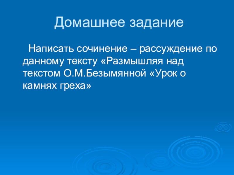 «Размышляя над текстом О.М.Безымянной «Урок о камнях греха»