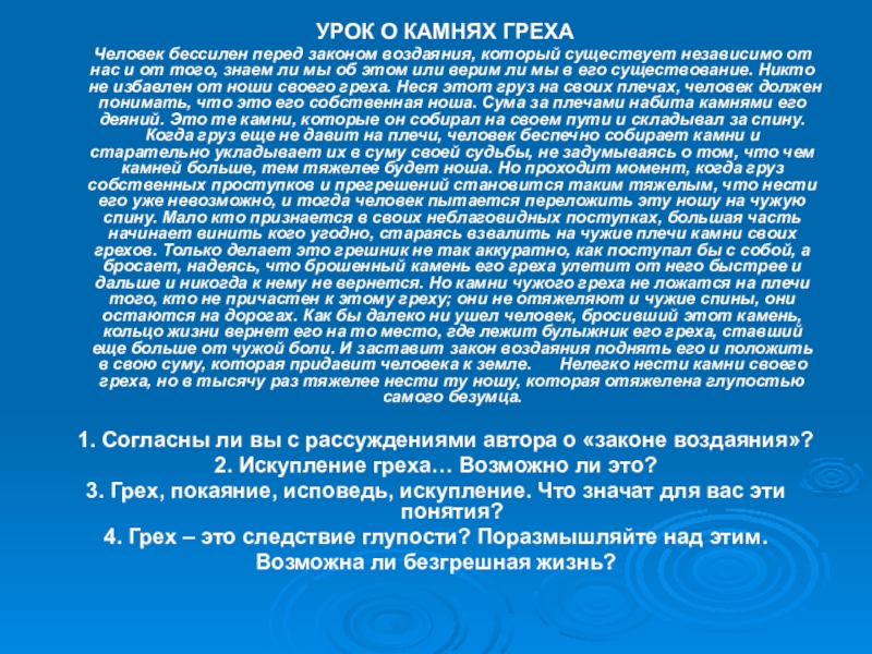 1. Согласны ли вы с рассуждениями автора о «законе воздаяния»?