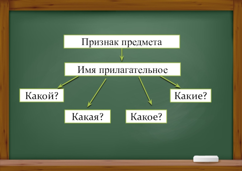 Признак предметаИмя прилагательноеКакое?Какая?Какой?Какие?