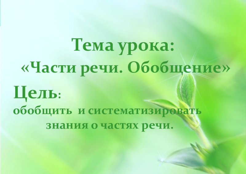Тема урока: «Части речи. Обобщение»Цель: обобщить и систематизировать знания о частях речи.