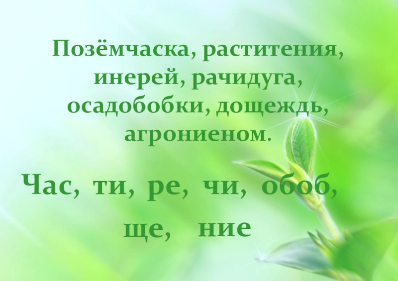 Позёмчаска, раститения, инерей, рачидуга, осадобобки, дощеждь, агрониеном. Час, ти,ре,чи,обоб,ще,ние