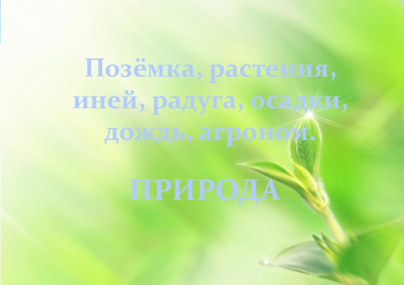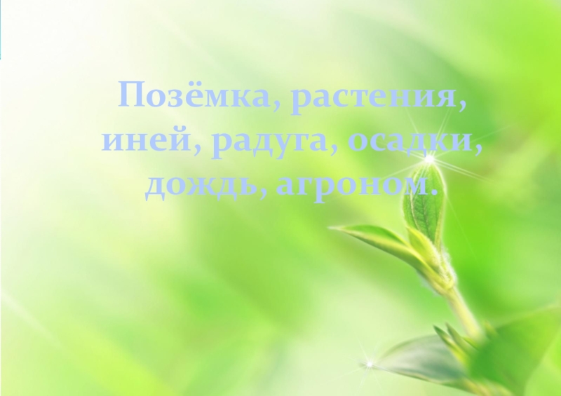 Слайд 7Позёмка, растения, иней, радуга, осадки, дождь, агроном.