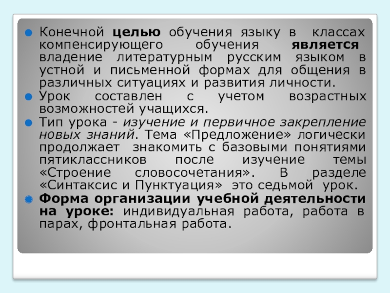 Слайд 35Конечной целью обучения языку в классах компенсирующего обучения является владение литературным