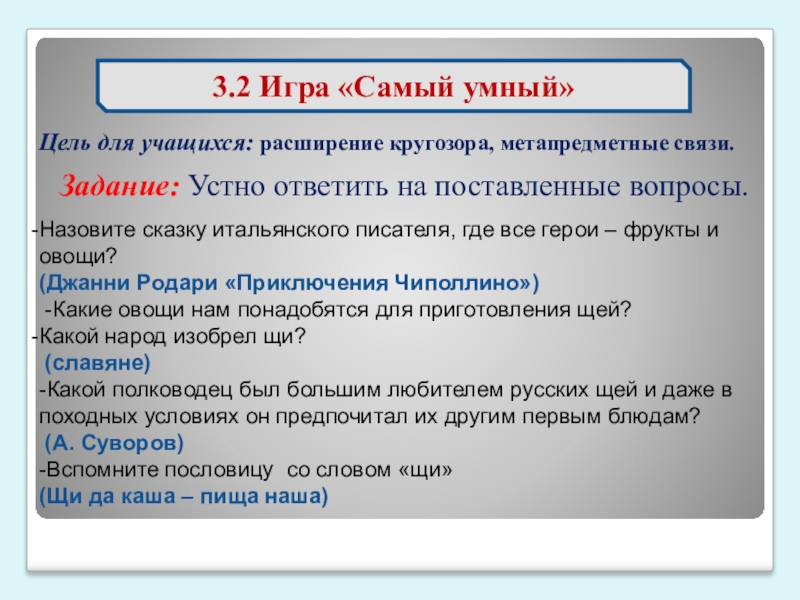 Слайд 17 Задание: Устно ответить на поставленные вопросы.