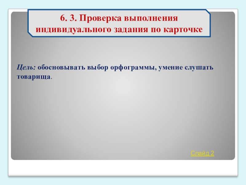 Слайд 27Цель: обосновывать выбор орфограммы, умение слушать товарища.