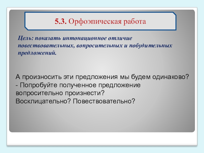Слайд 21Цель: показать интонационное отличие повествовательных, вопросительных и побудительных предложений.