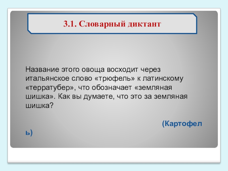 к латинскому «терратубер», что обозначает «земляная шишка». Как вы думаете, что это за земляная шишка?