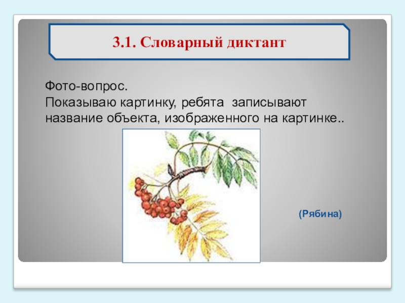 Показываю картинку, ребята записывают название объекта, изображенного на