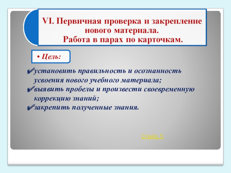 Слайд 24установить правильность и осознанность усвоения нового учебного материала;