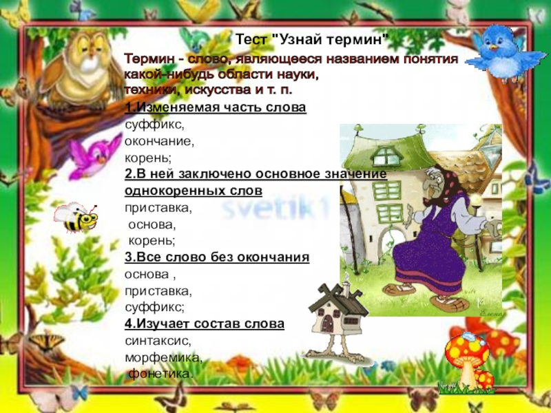 Цель: систематизировать и проверить знания учащихся по теме "Морфемика"