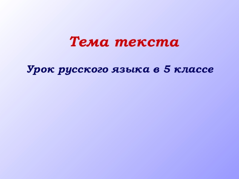 Презентация, доклад на тему Урок русского языка в 5 классе Тема текста