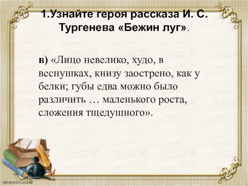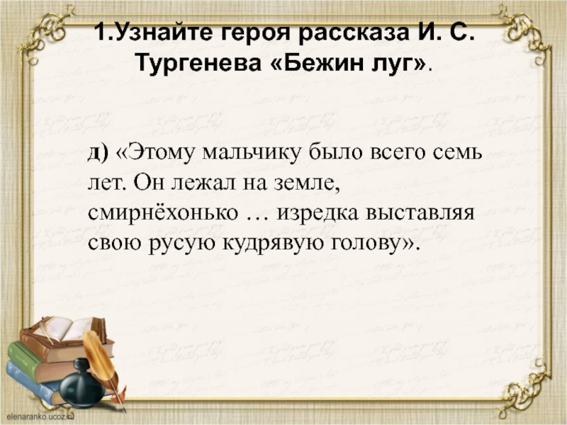 Слайд 71.Узнайте героя рассказа И. С. Тургенева «Бежин луг».