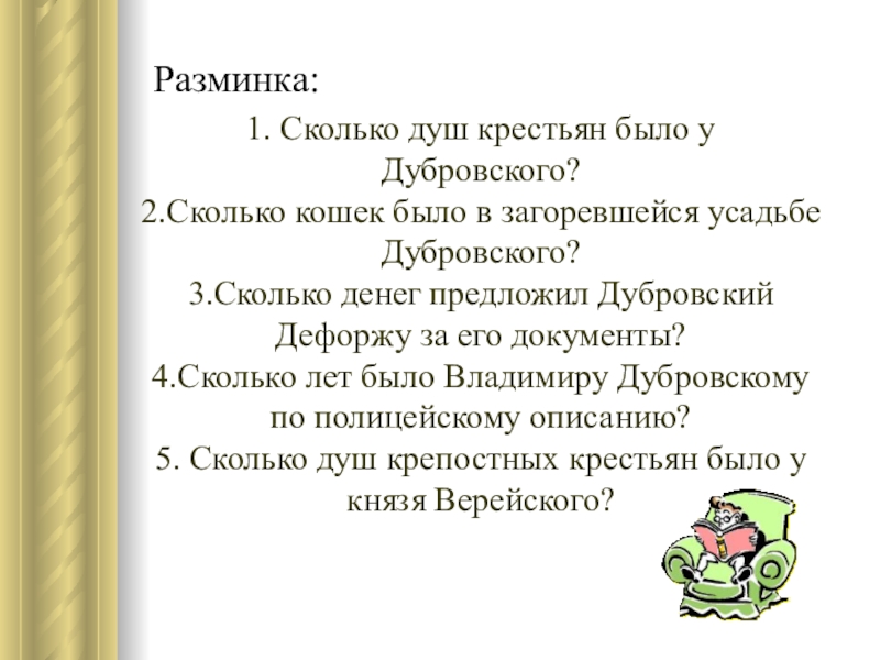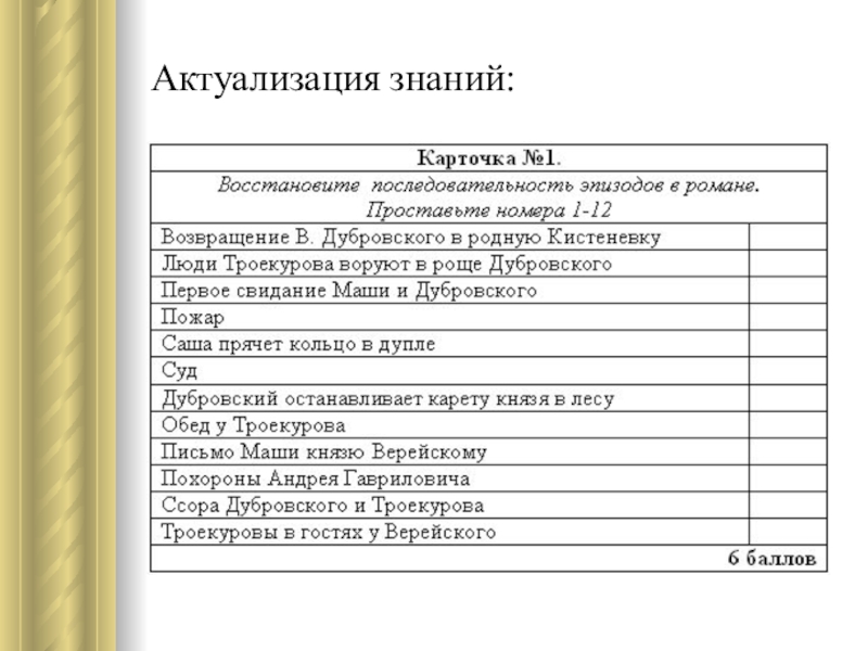 Загадайте с помощью жестов и мимики эпизод из романа «Дубровский».