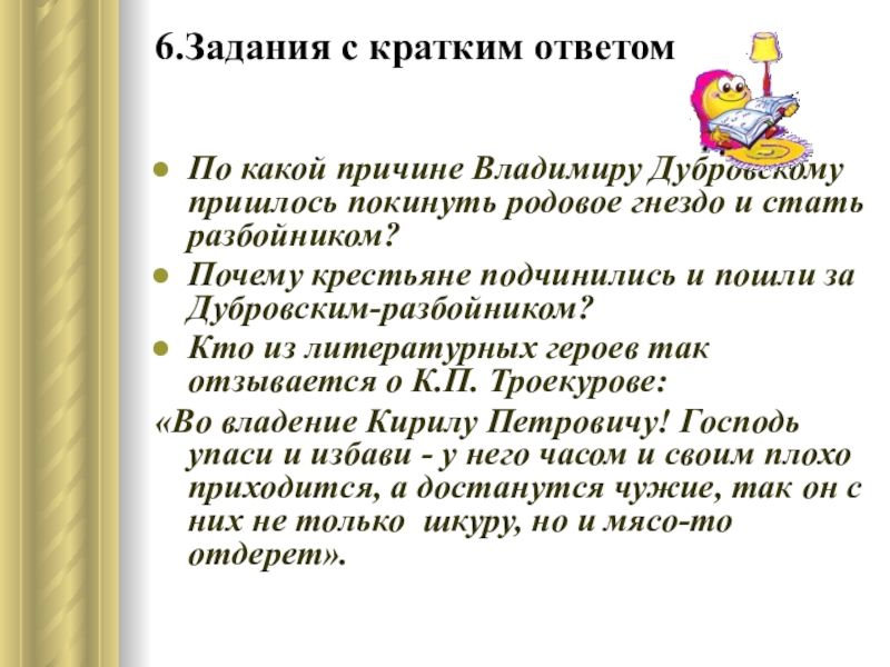 Почему крестьяне подчинились и пошли за Дубровским-разбойником?