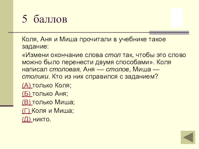 5 баллов