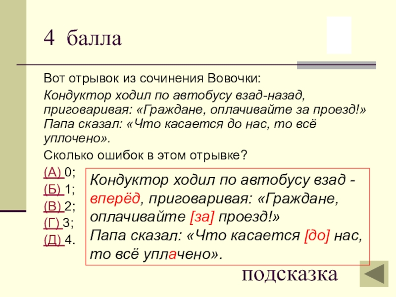 Кондуктор ходил по автобусу взад - вперёд, приговаривая: «Граждане, оплачивайте [за] проезд!»