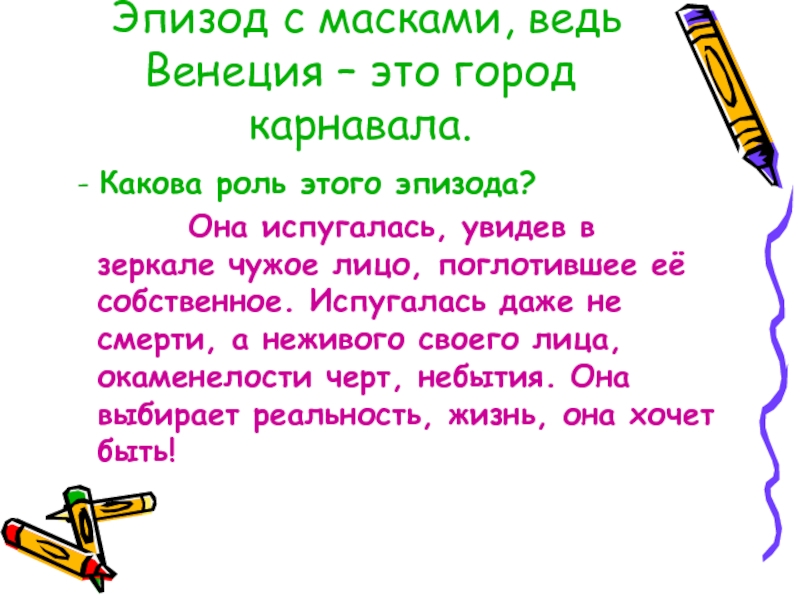 Слайд 17 Эпизод с масками, ведь Венеция – это город